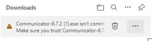 Using Edge, once you click on the Communicator desktop app download link you should see a box on the upper right corner of your browser showing the progress of the download. Once downloaded you should see a box similar to that on the left.
